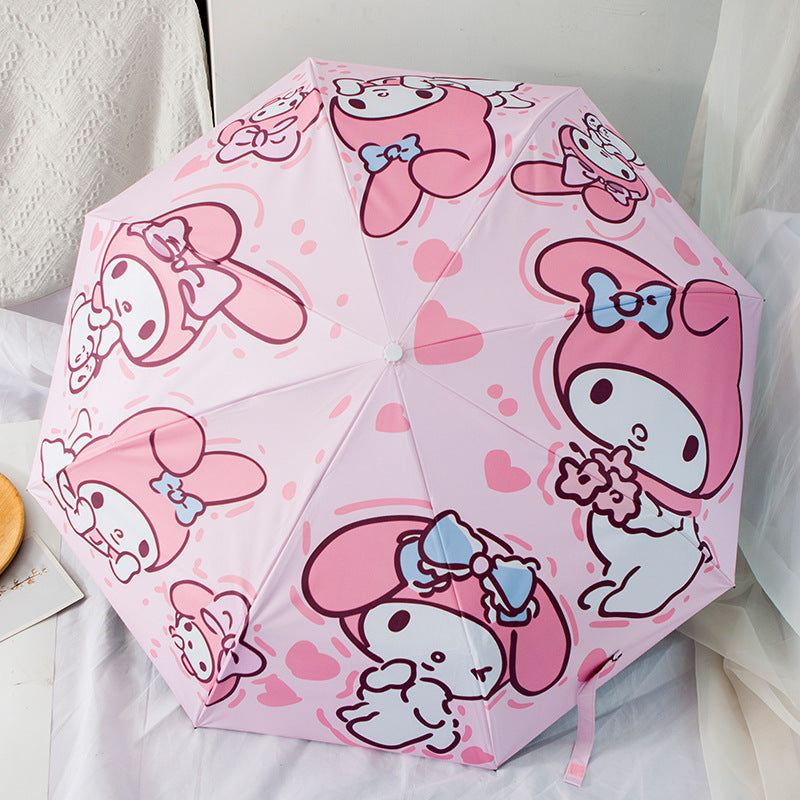 The Friends Umbrellas feature a playful Sanrio character print, showcasing popular figures like Cinnamoroll, Hello Kitty, My Melody. This umbrella not only offers essential protection from rain and sun but also enhances your outdoor aesthetic, making it an excellent choice for fans of whimsical design.