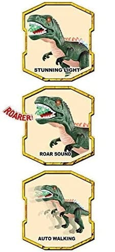 This toy features automated walking and realistic roar sound, along with a stunning LED light display featuring red, blue, and green lights along the clear spikes on its back and flashing eyes and tongue. It uses premium, durable, non-toxic, BPA-free vinyl and is certified to conform to US toy safety standards ASTM F963. Three AA batteries (not included) are required for operation.