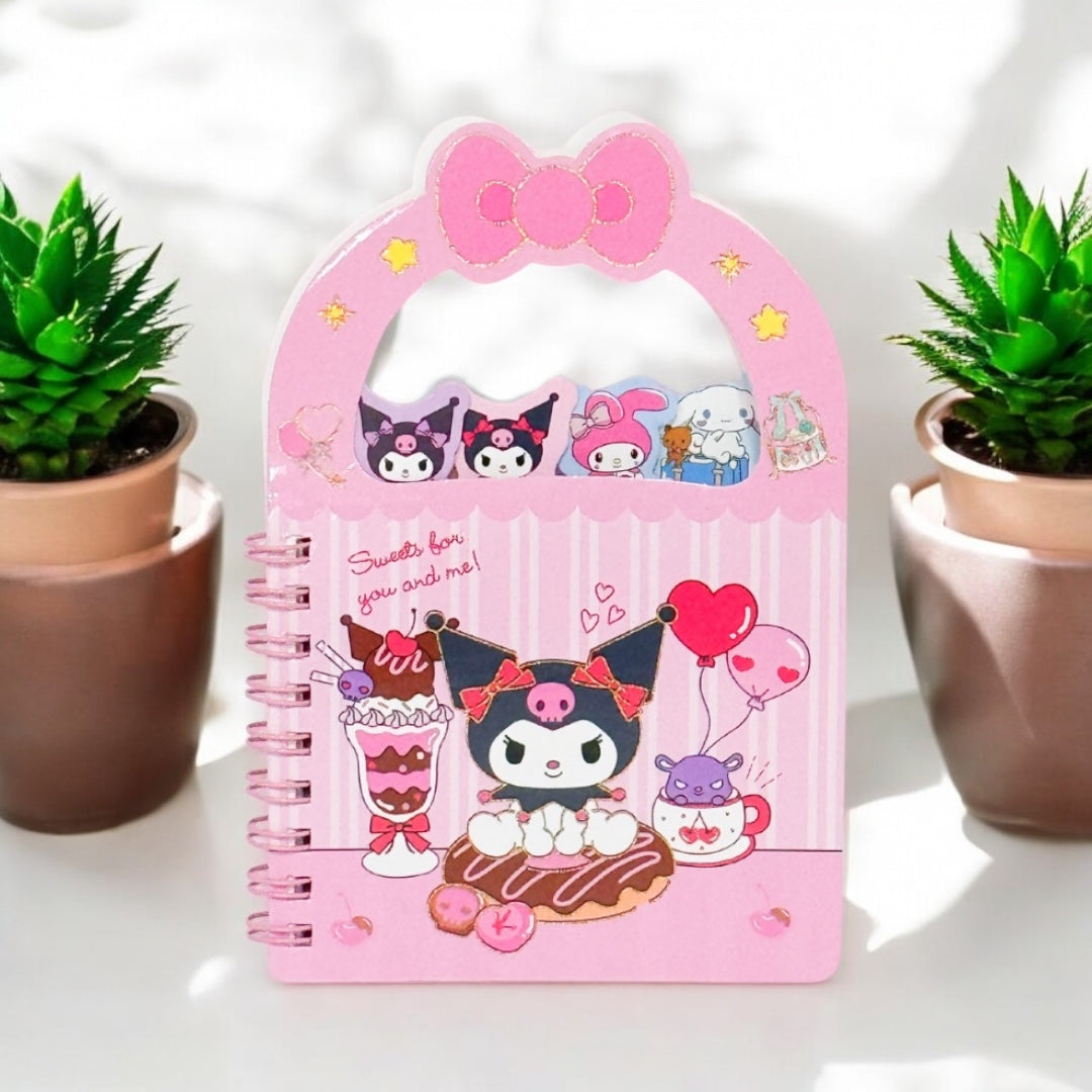 The mini notebook features unique characters and includes 4 tabbed sections. The compact size makes it convenient for on-the-go writing. Ideal for travel.