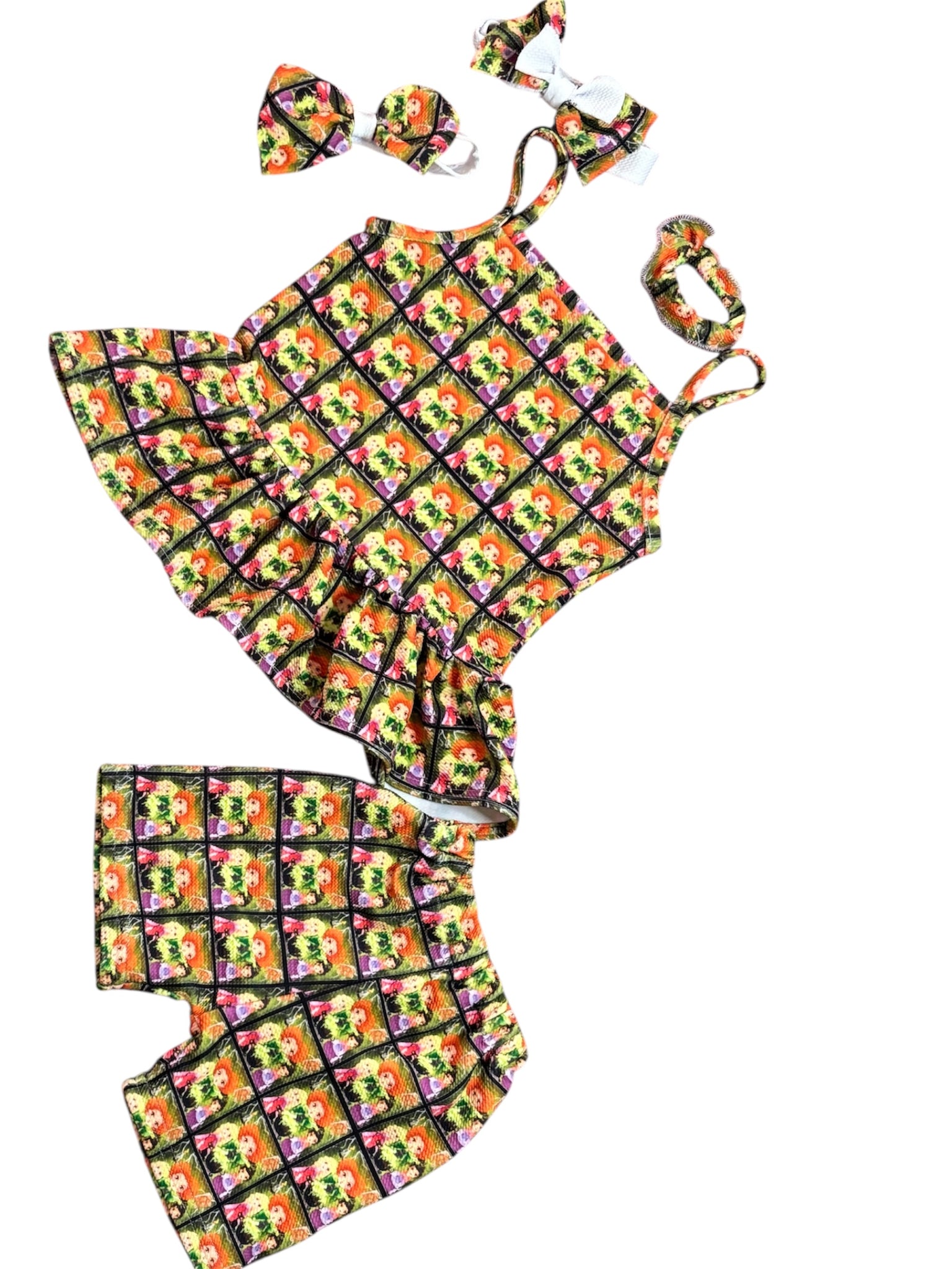 Hocus Pocus Set includes two headbands and a scrunchy, all handmade with light, stretchable fabric for ultimate comfort. Sizes range from 2T to 5T.